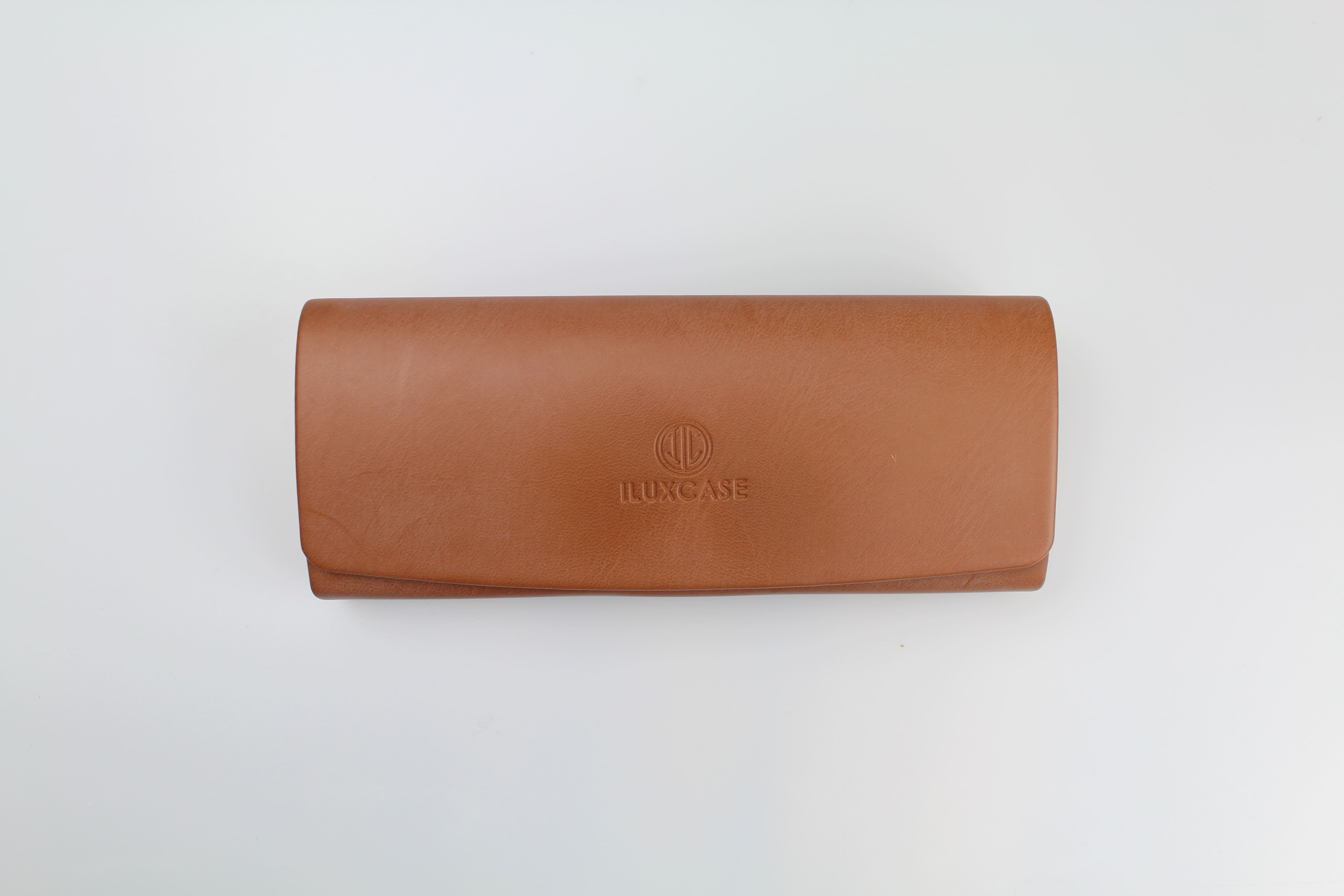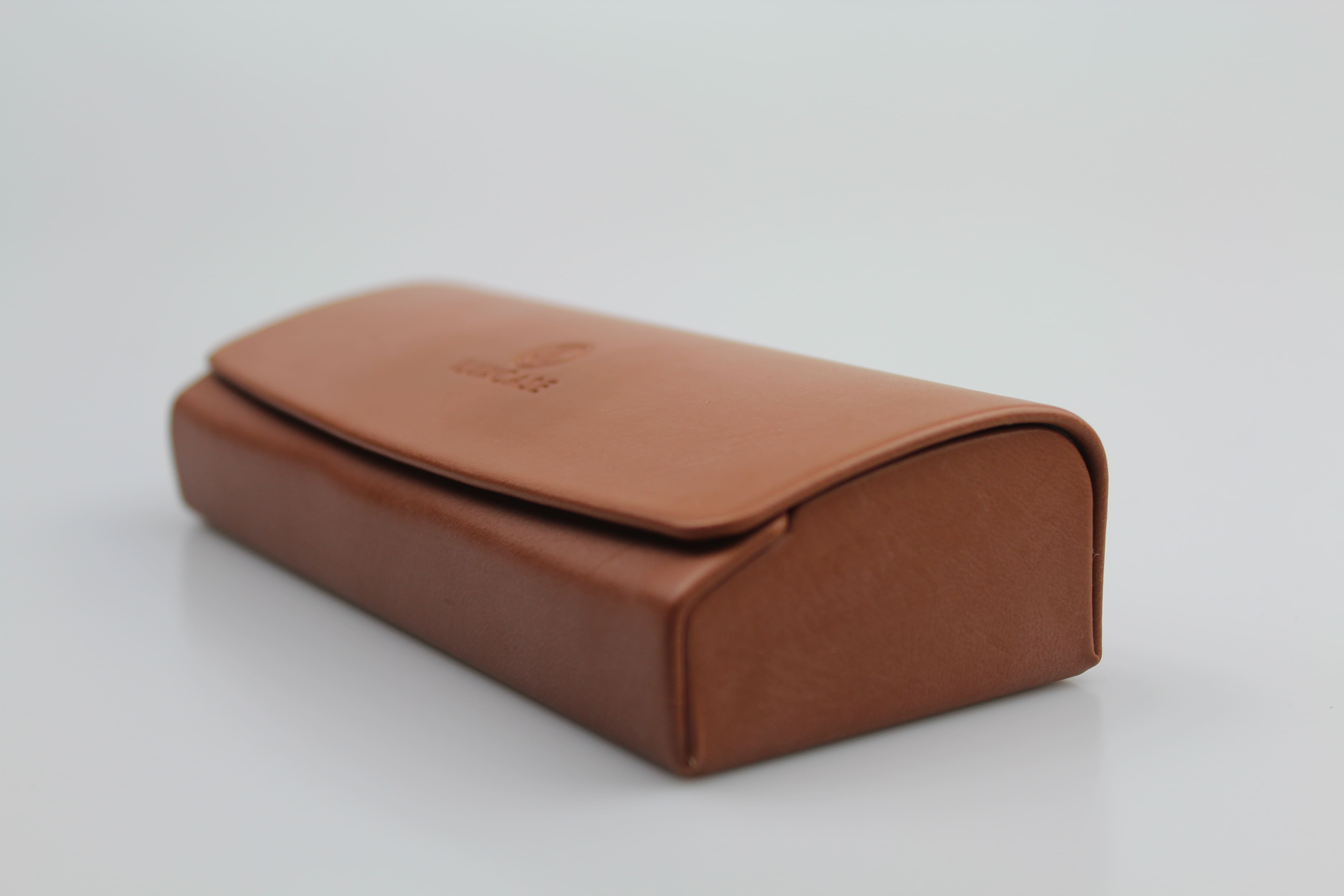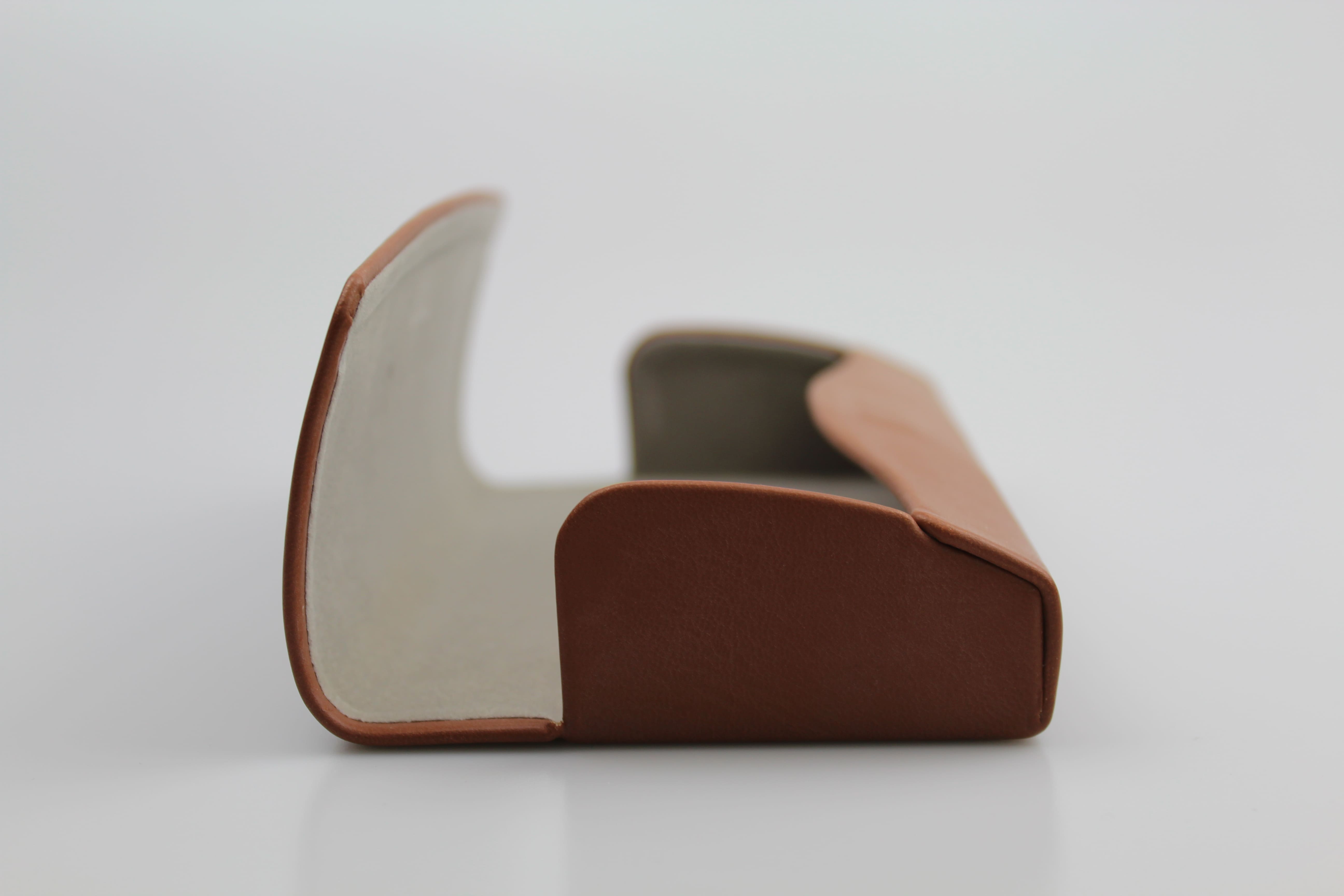 Étui à lunettes rigide en cuir ou en similicuir camel à rabat incurvé arrondi – fermoir à aimant